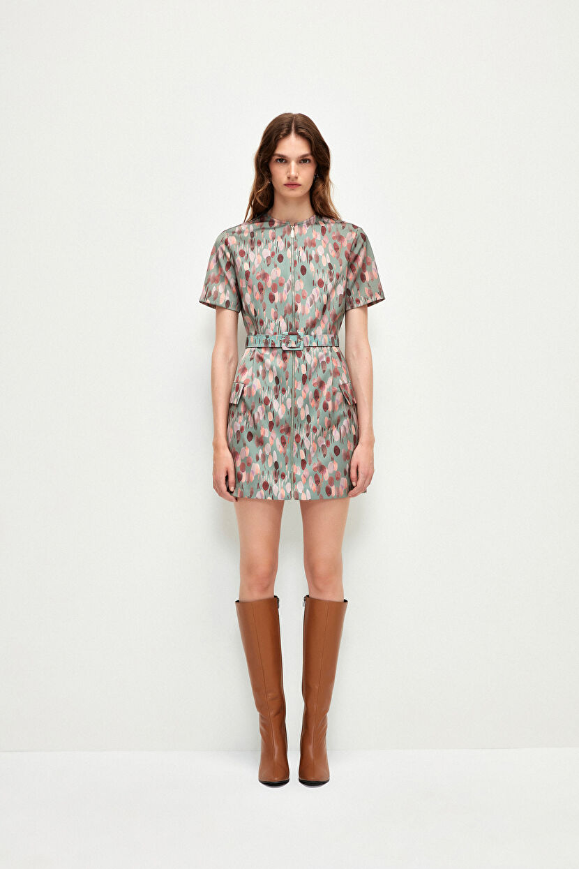 Green Zipper Botton Dress