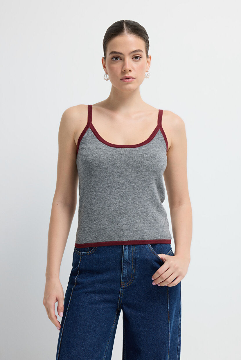 Grey Piping Detailed Strappy Knitwear Blouse 11545370000-014 | adL