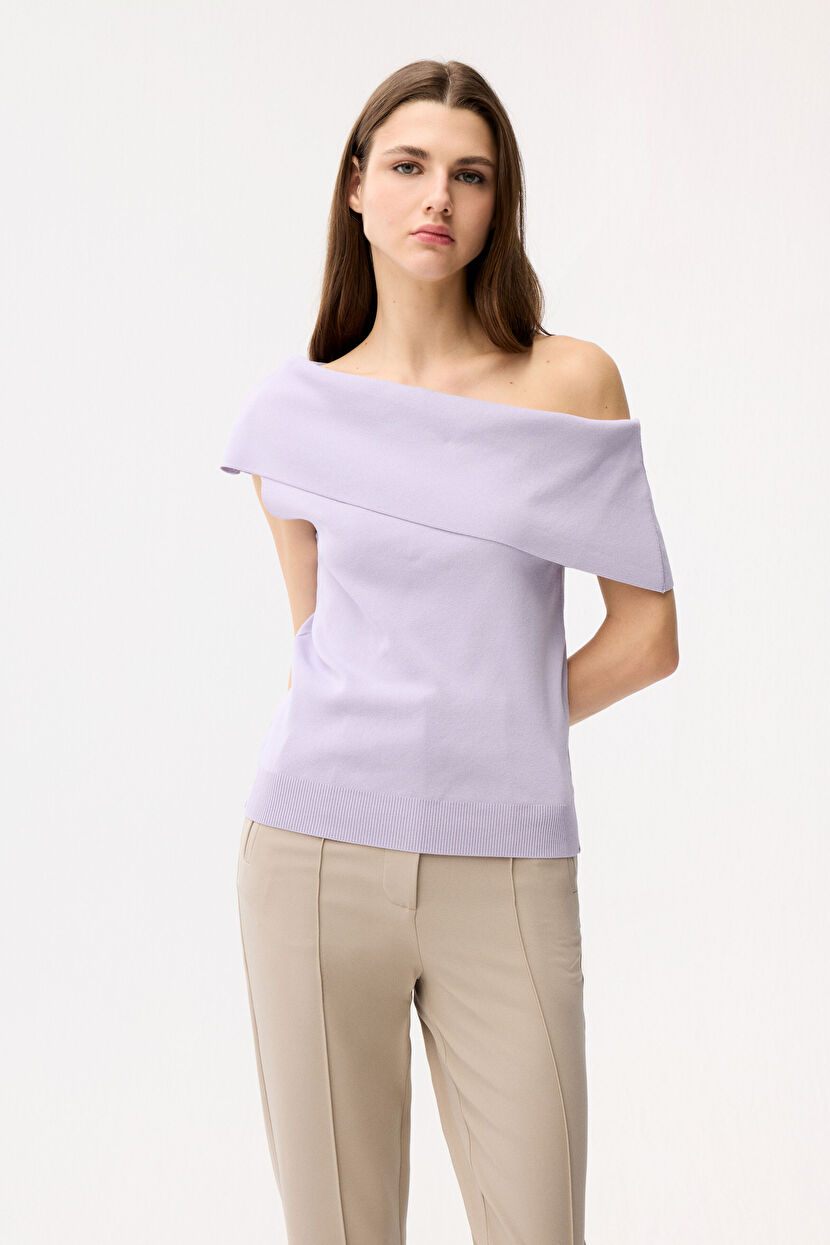 Lilac Low Shoulder Knitwear Blouse