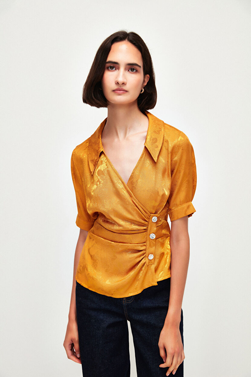Saffron Shirred Short Sleeve Blouse