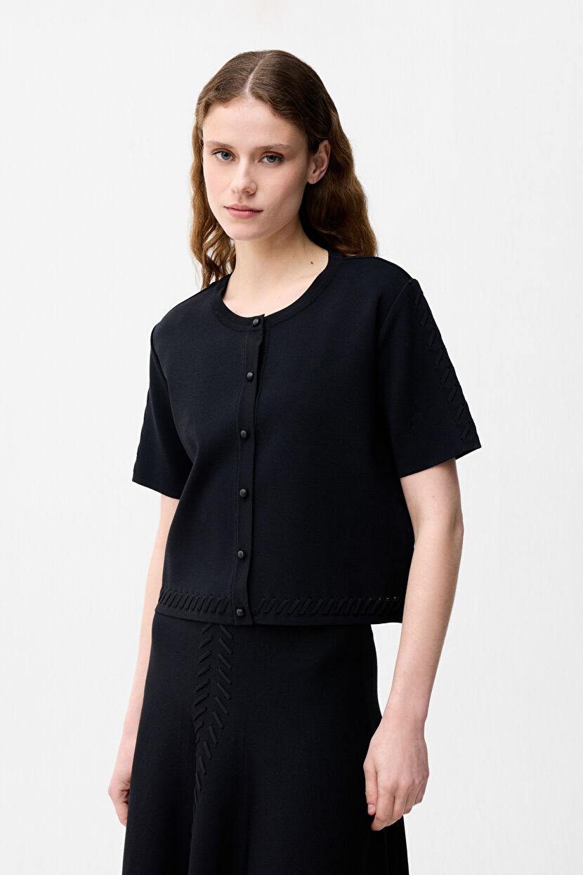 Black Knitted Cardigan with Buttons On the Front