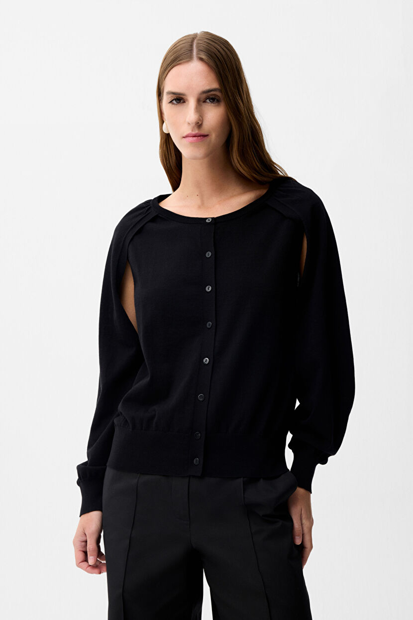 Black Knitwear Cardigan with Sleeve Detail