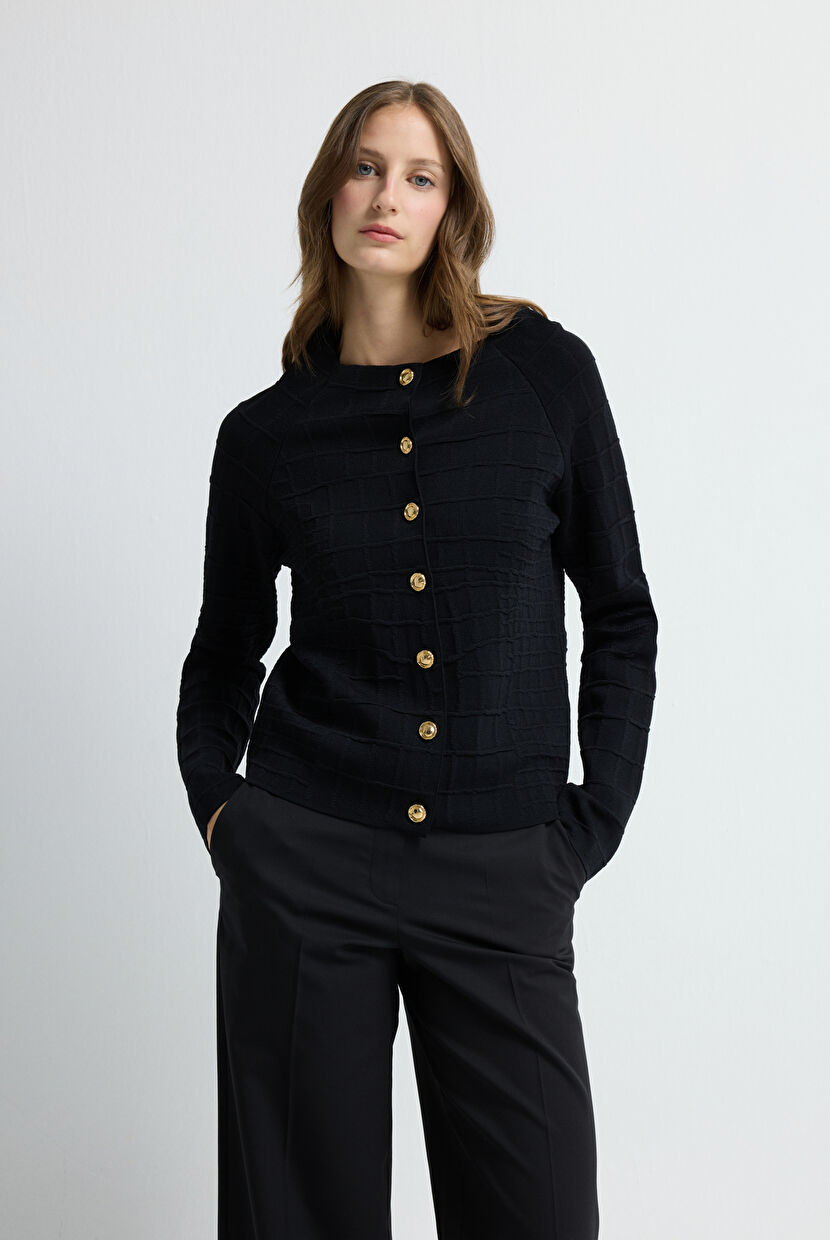 Black Stand collar Sweater Cardigan