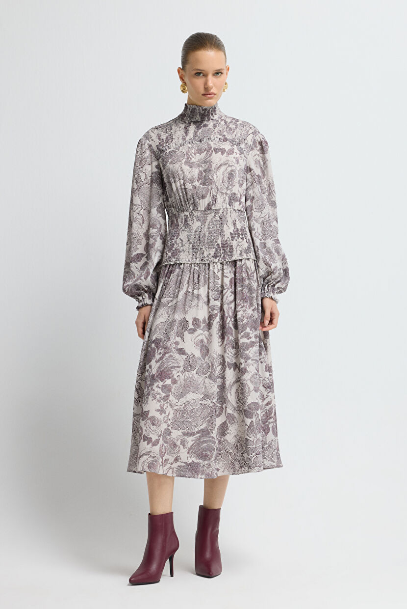 Damson Patterned Long Sleeve Dress