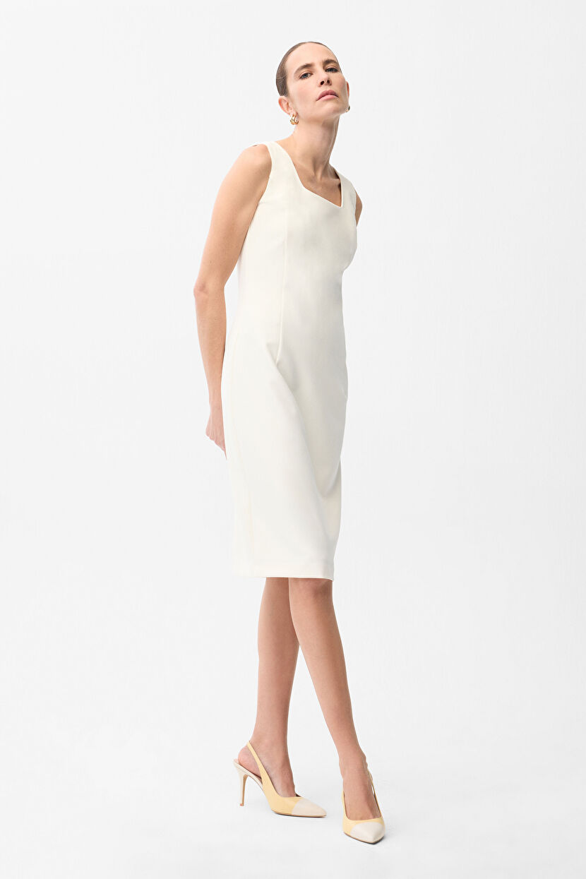 Vanilla Sleeveless Square Neck Gabardine Dress