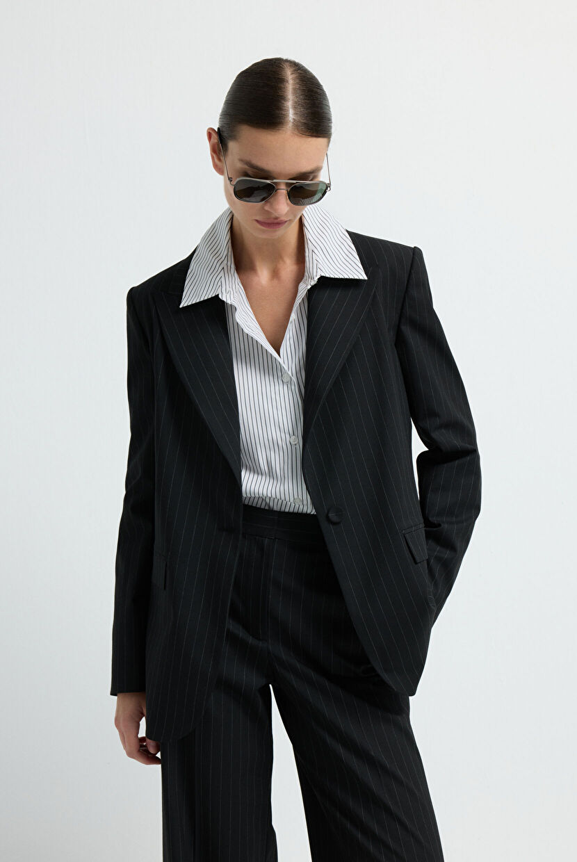 Black Mono Closure Striped Jacket