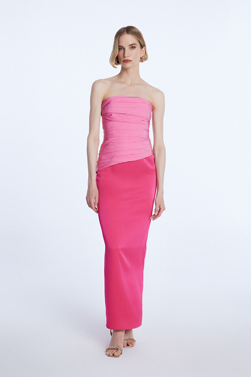 Pink Sleeveless Long Dress with Gathered Detail