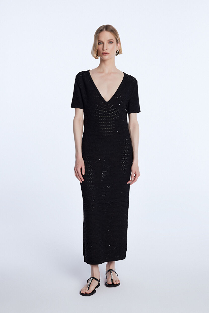 Black Sequin Knitwear Dress