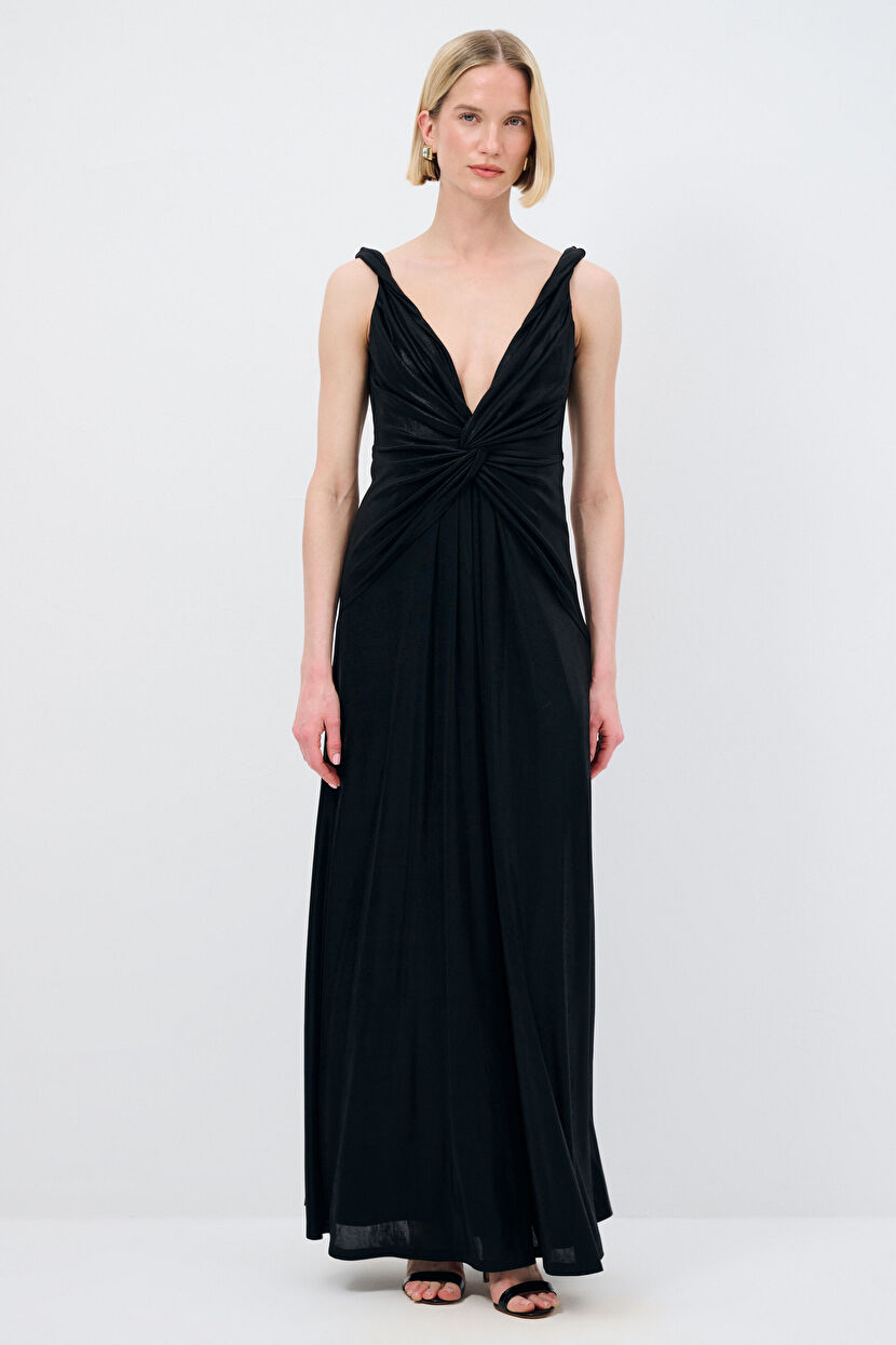 Black V-Neck Sleeveless Long Dress
