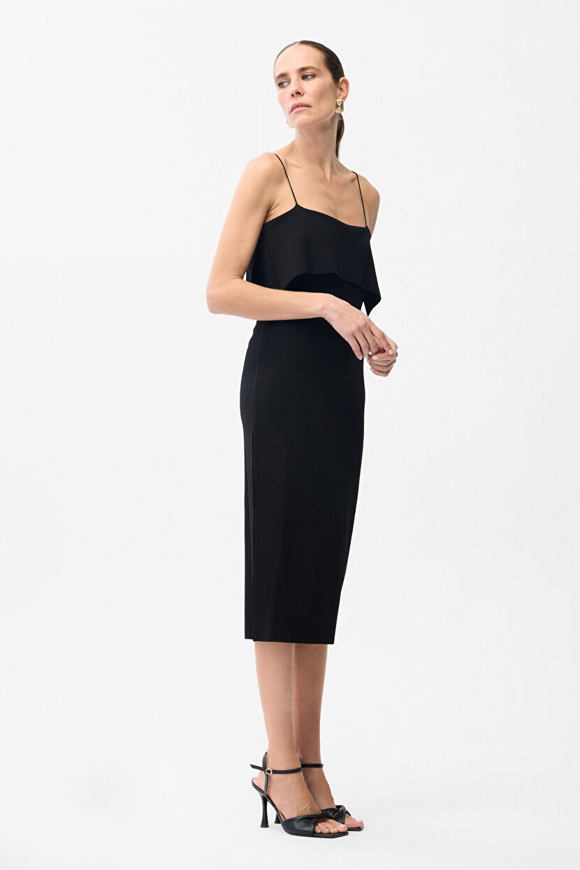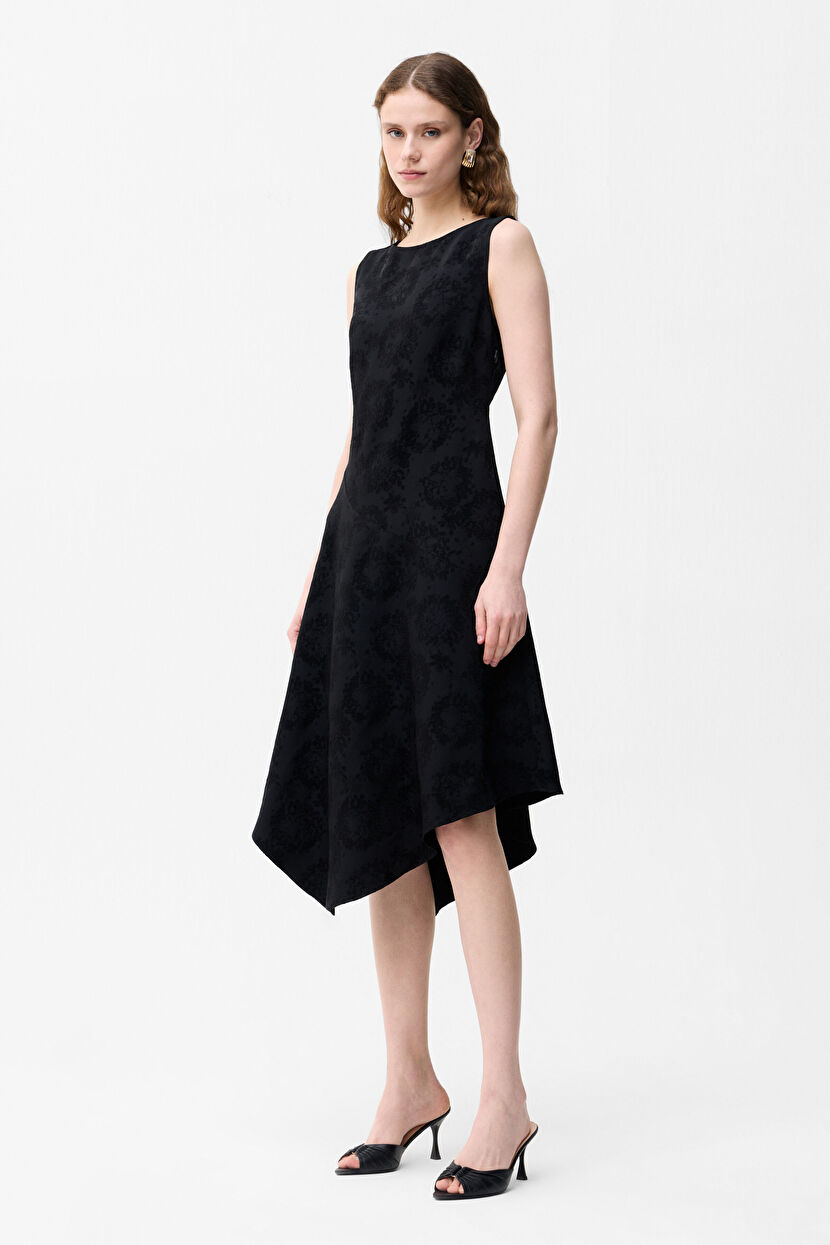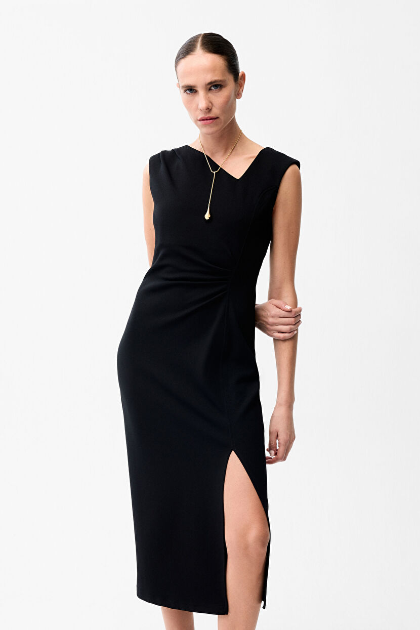Black Sleeveless Slit Detailed Asymmetrical Dress