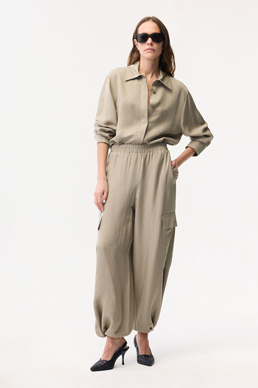 Dark Mint Cargo Pocket Elastic Waist Pants