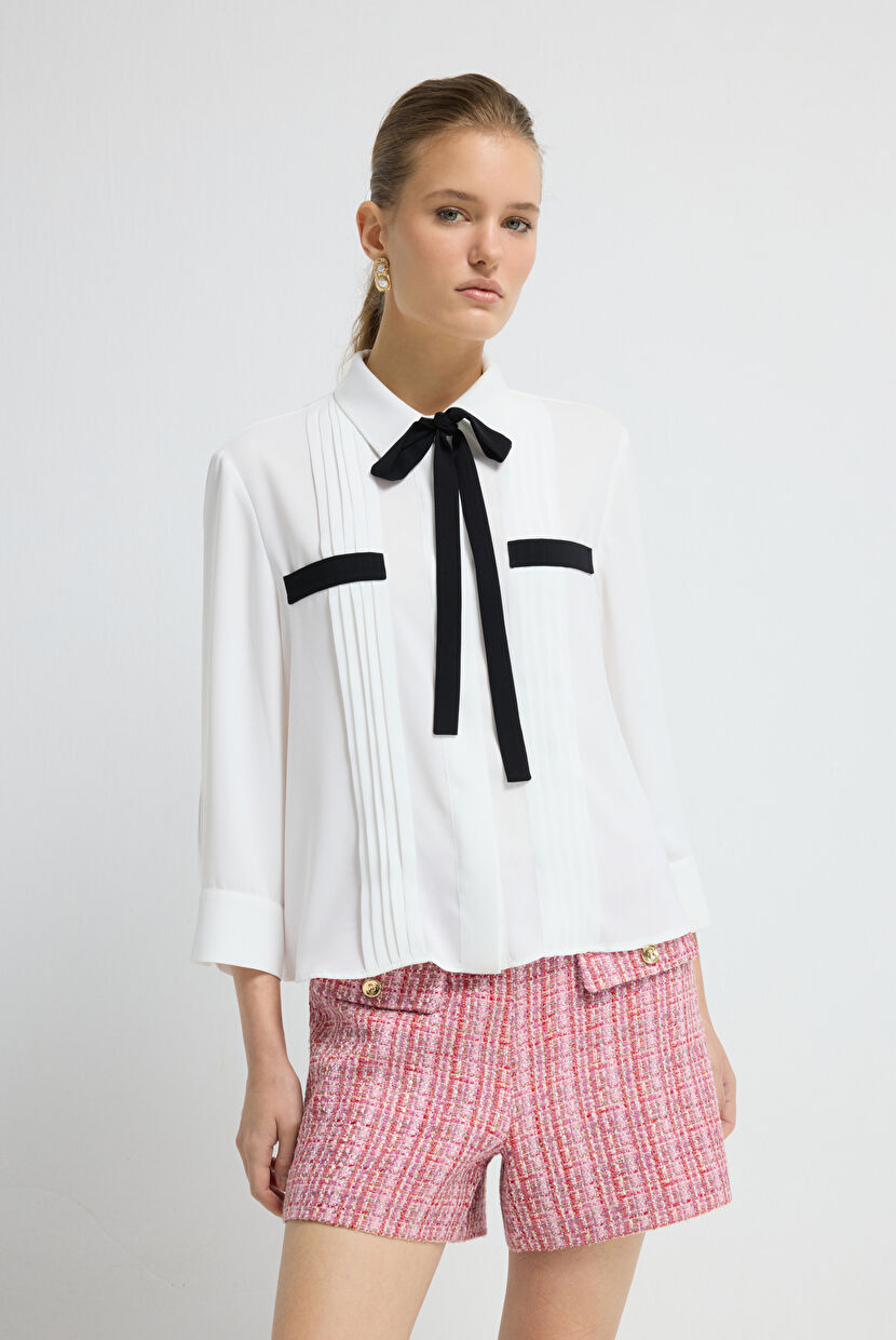 In addition to their comfort and practicality, women’s shirts can also convey a distinctly feminine allure. Fabrics like silk and satin instantly elevate the simplest looks. adL offers elegant shirt designs in shades like blush pink, navy, grey, and more. For a bold and chic statement, choose red or hot pink. To achieve a romantic and refined look, pair neutral-toned shirts with pearl accessories and block-heeled sandals.