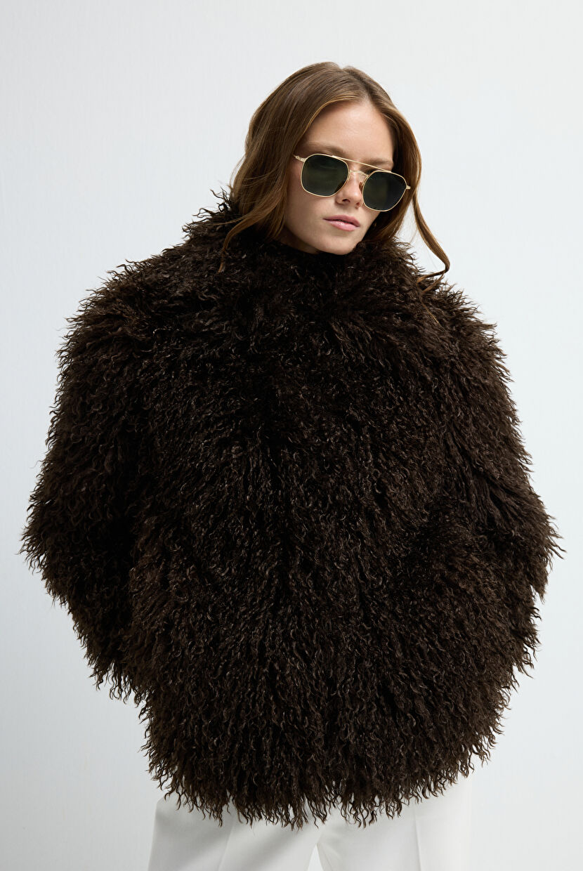 Camel Leather Detailed Fur Coat