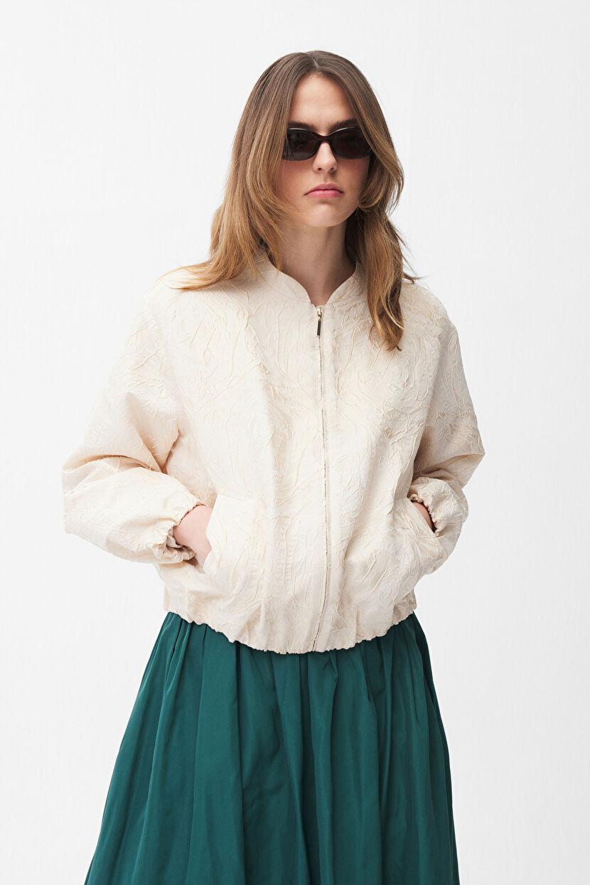 Vanilla Bomber Jacket with Zipper