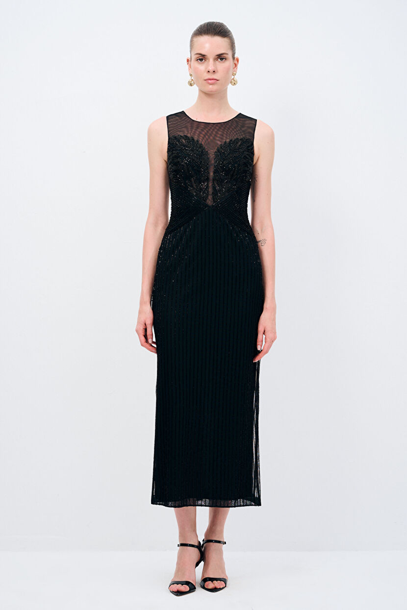 Black Sleveeles Embroidered Dress