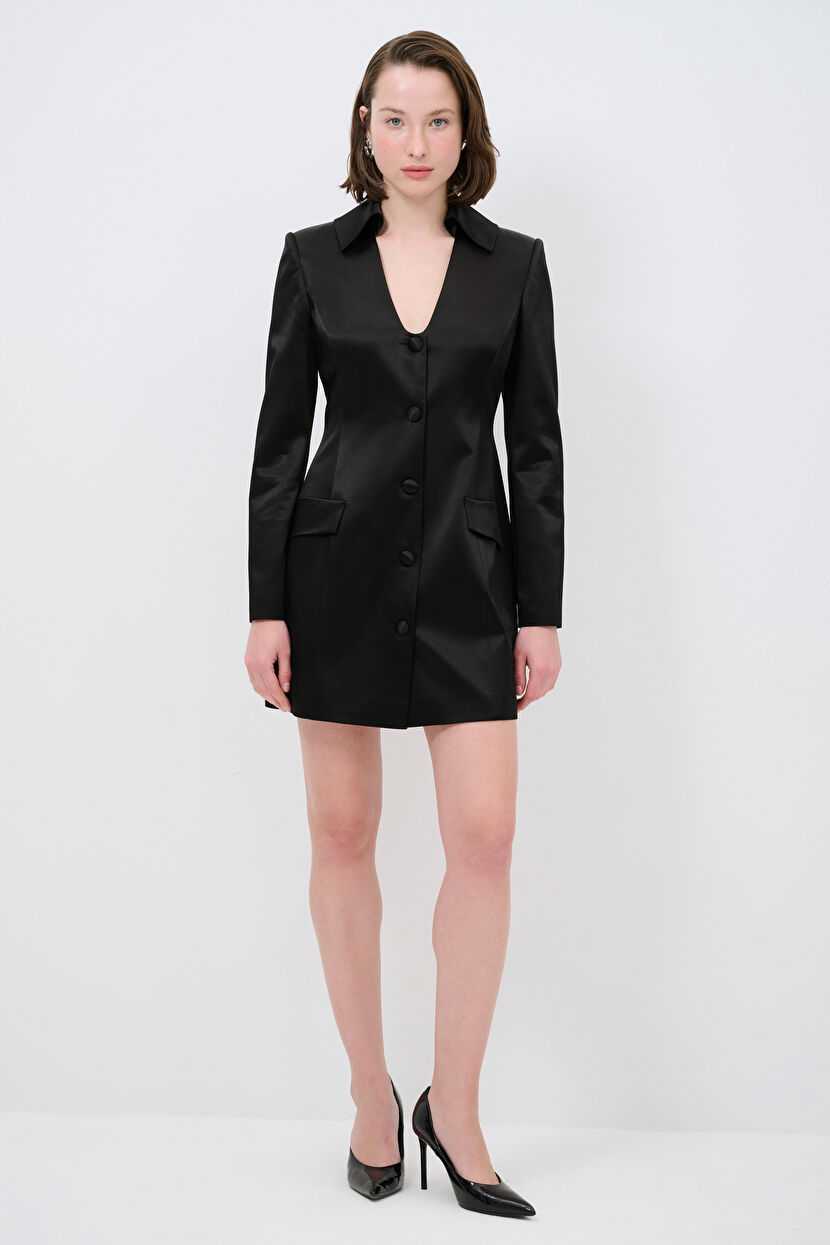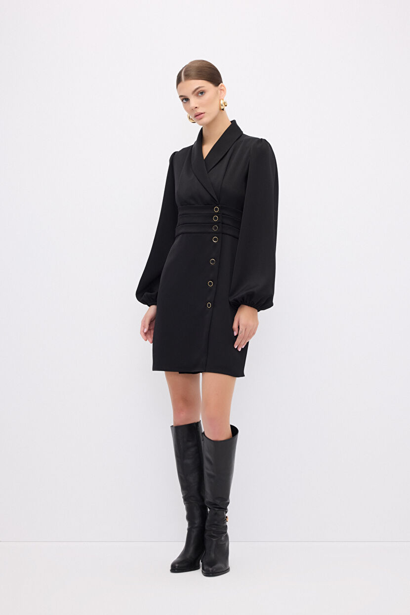Black Mid-Length Blazer Dress