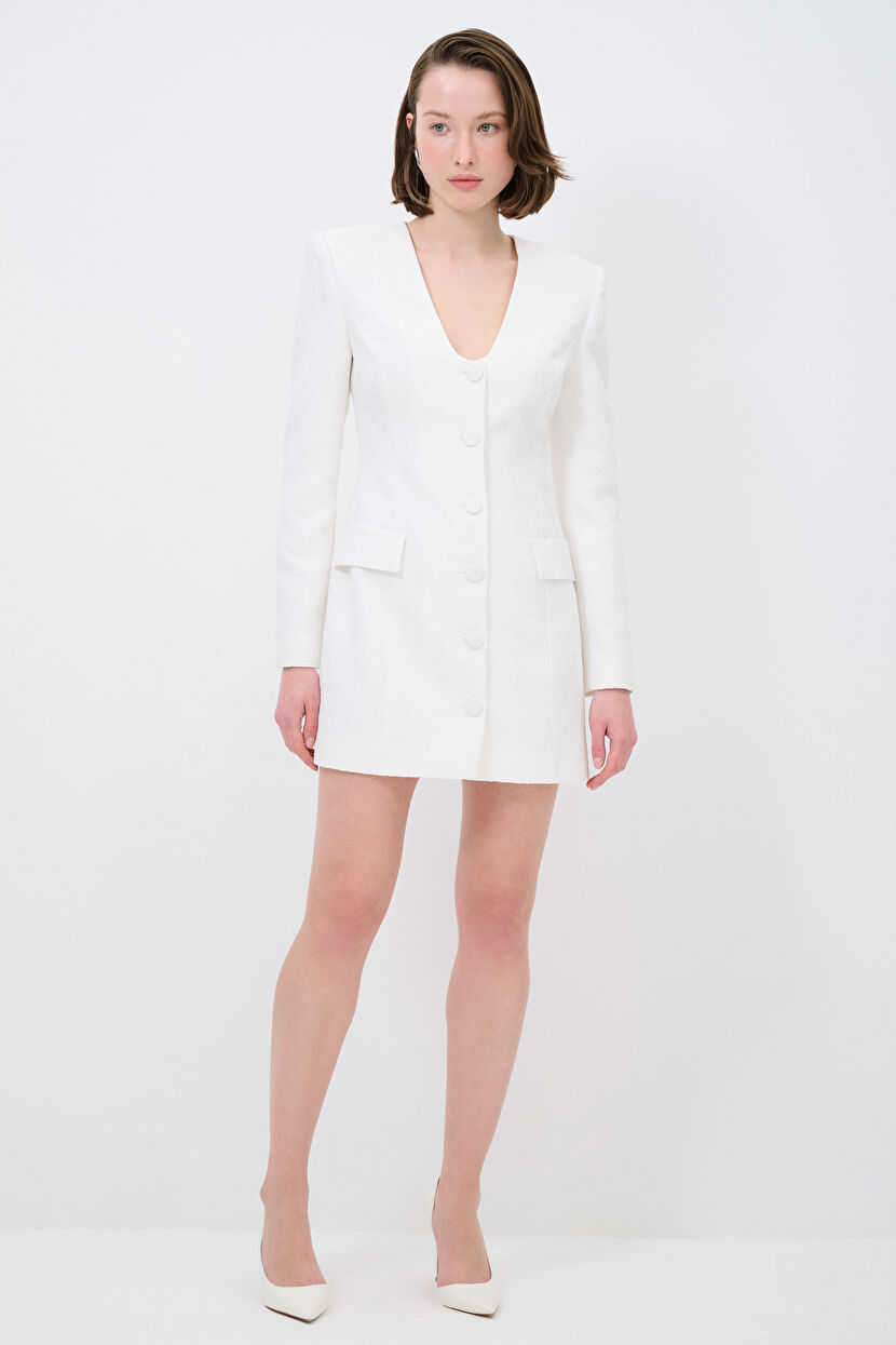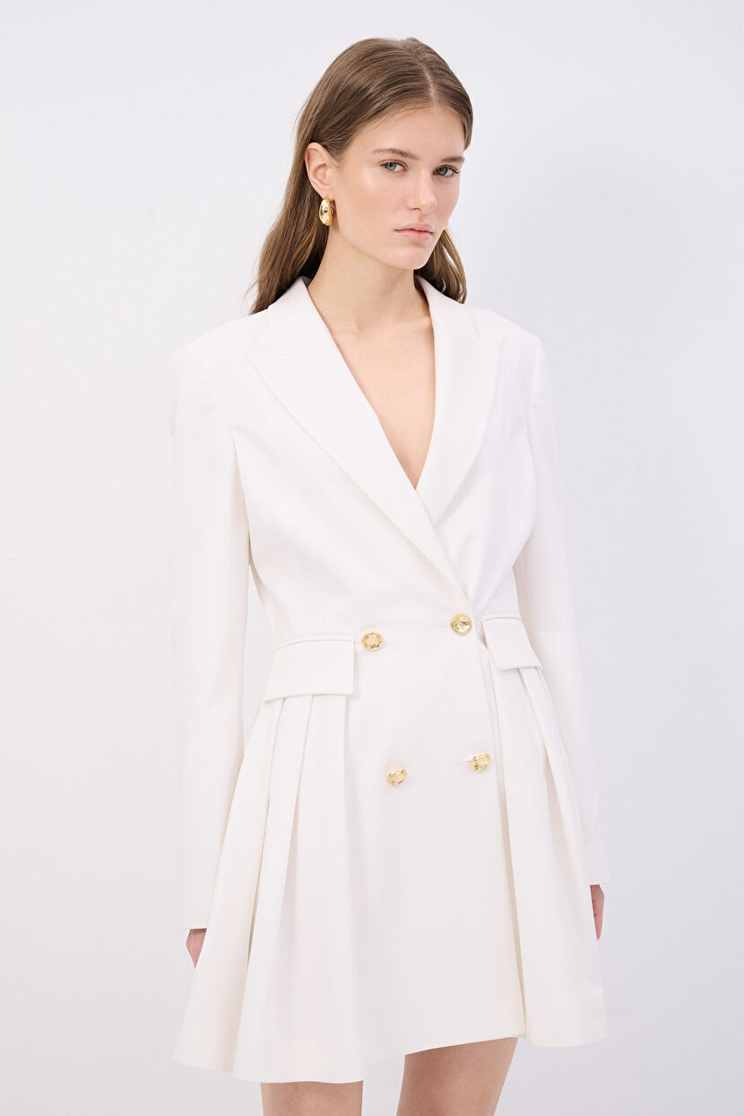 Bone Flounce Jacket Dress with Pocket Flap Detail
