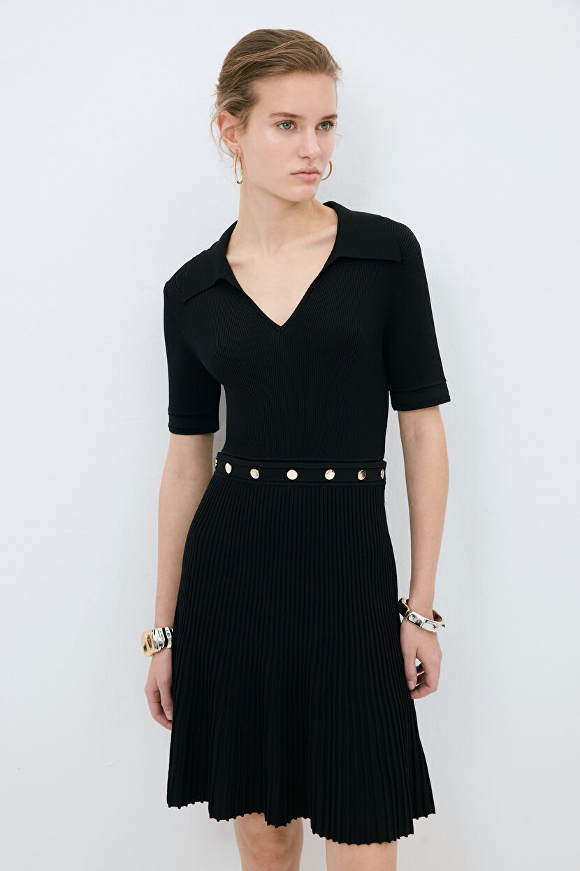Black Stand Collar Knitwear Dress