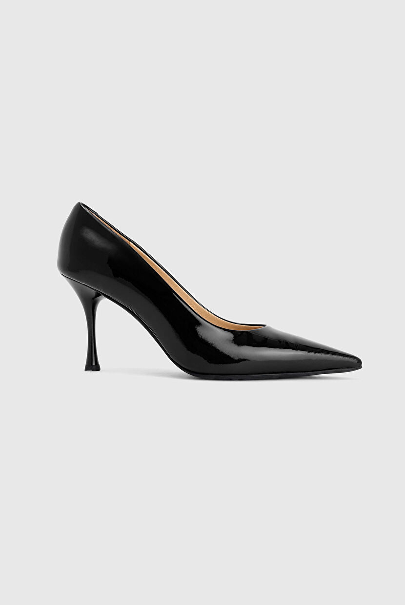 Black Leather Patent Leather Stiletto Shoes