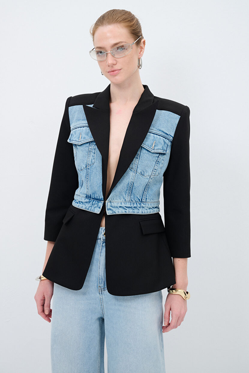 Black Denim Garnish Crop Jacket