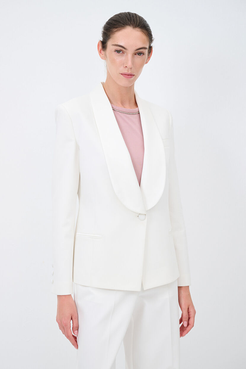 Bone Satin Detailed Jacket