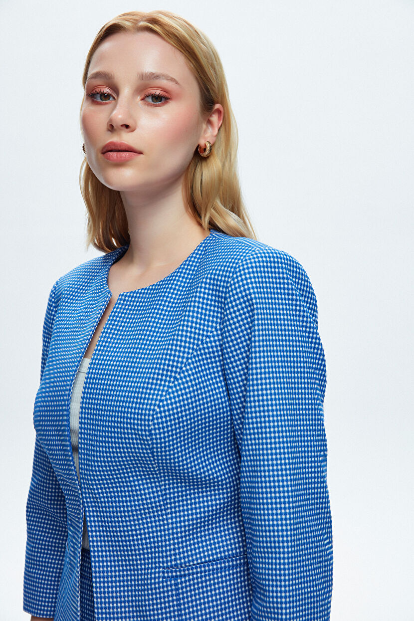 Navy Blue 3/4 Sleeve Patterned Jacket