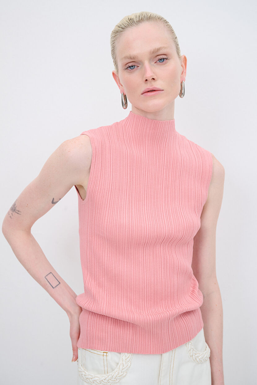 Pink Turtleneck Sleeveless Knitwear Sweater