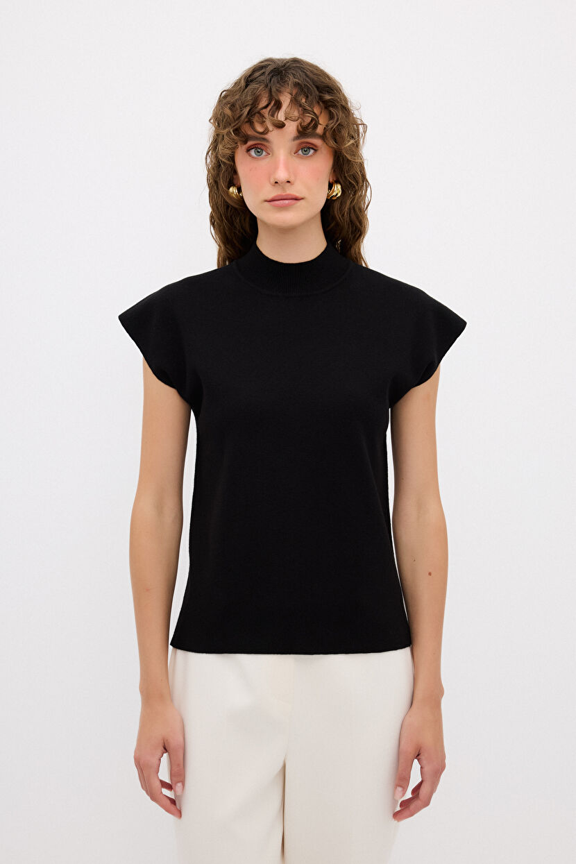 Black Turtleneck Short Sleeve Knitwear Sweater