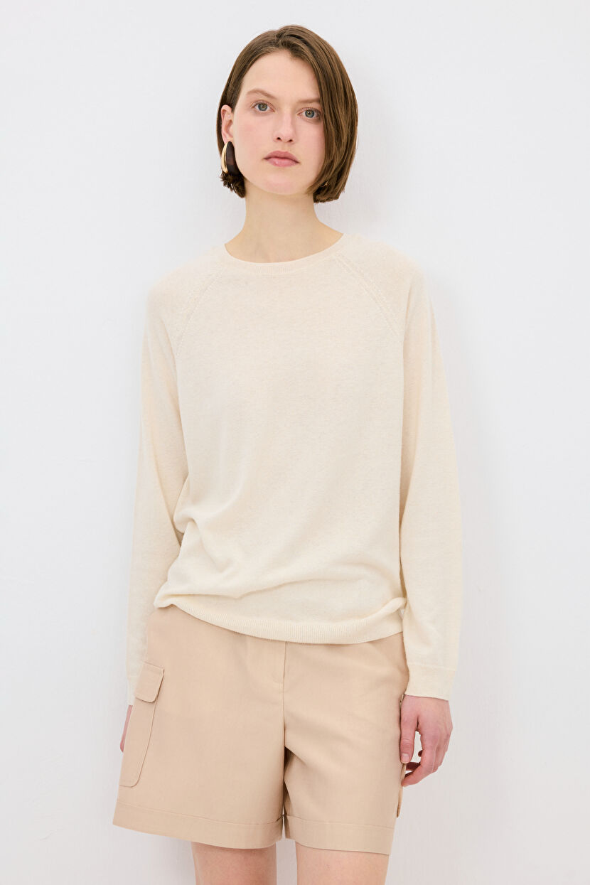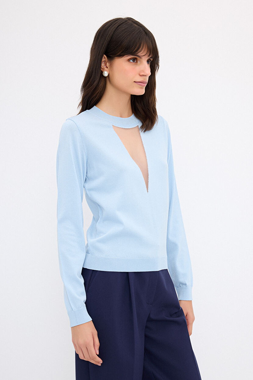 Grey Pearl Detailed Short Sleeve Knitwear Sweater