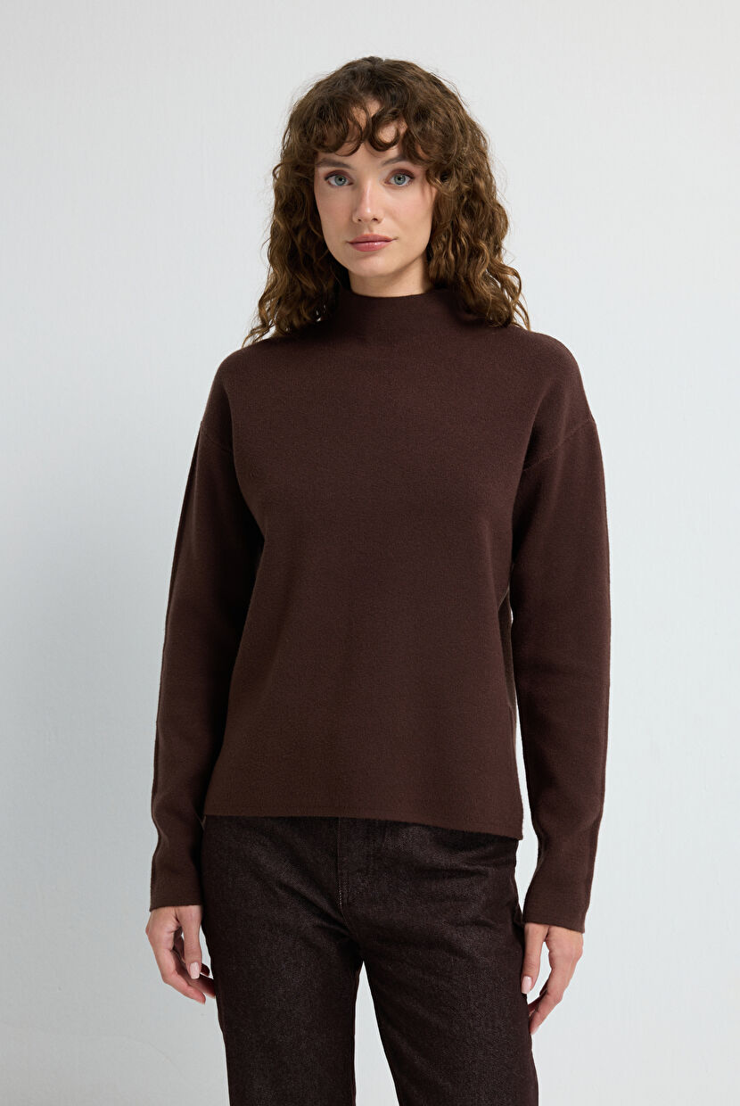 Brown Turtleneck Collar Knitwear Jumper