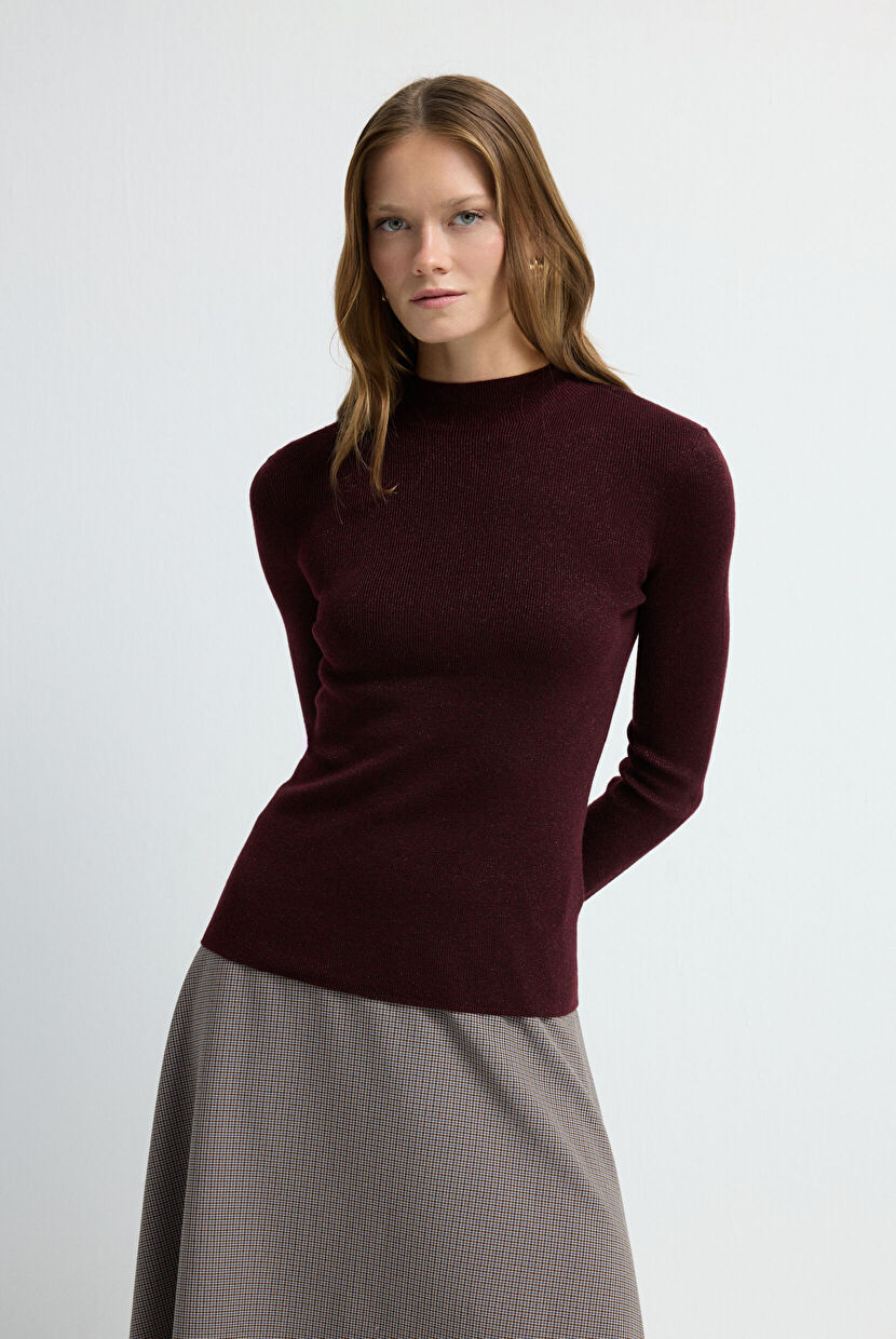 Claret Red Glittery Turtleneck Sweater