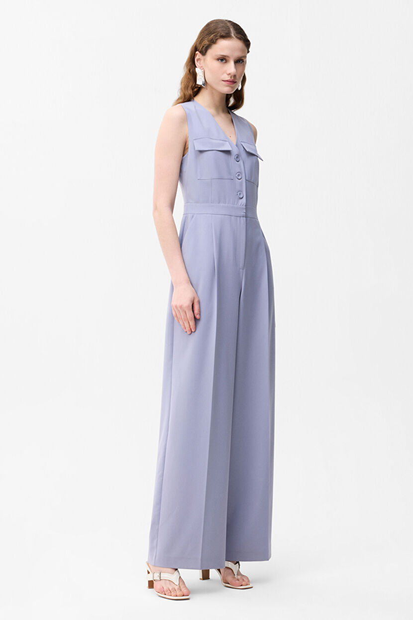 Lilac V-Neck Wide Leg Pocketed Jumpsuit