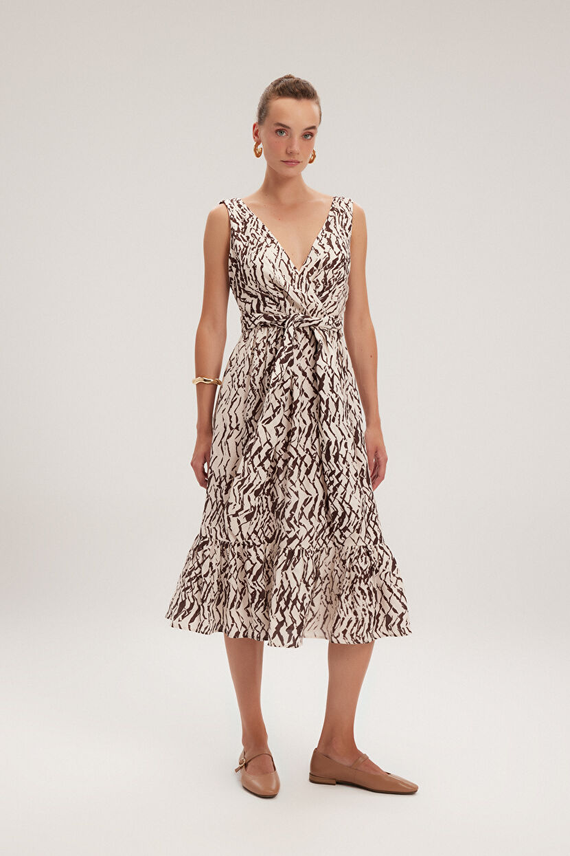 For women with an hourglass figure, where the waist is well-defined and shoulders and hips are proportionate, belted or fitted styles are ideal. Strappy linen dresses accentuate the waist and enhance feminine curves, offering a refined yet natural look.