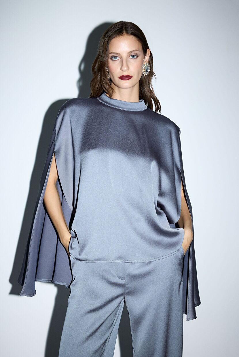 Grey Cape Detailed Blouse