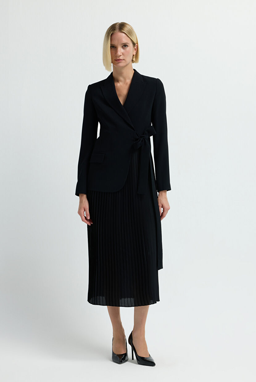 Black Pleated Detailed Jacket Dress