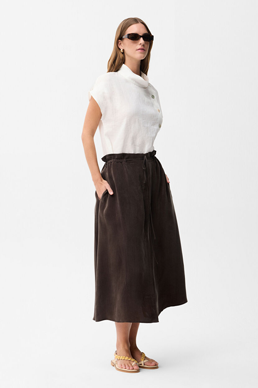 Brown Elastic Waist Skirt