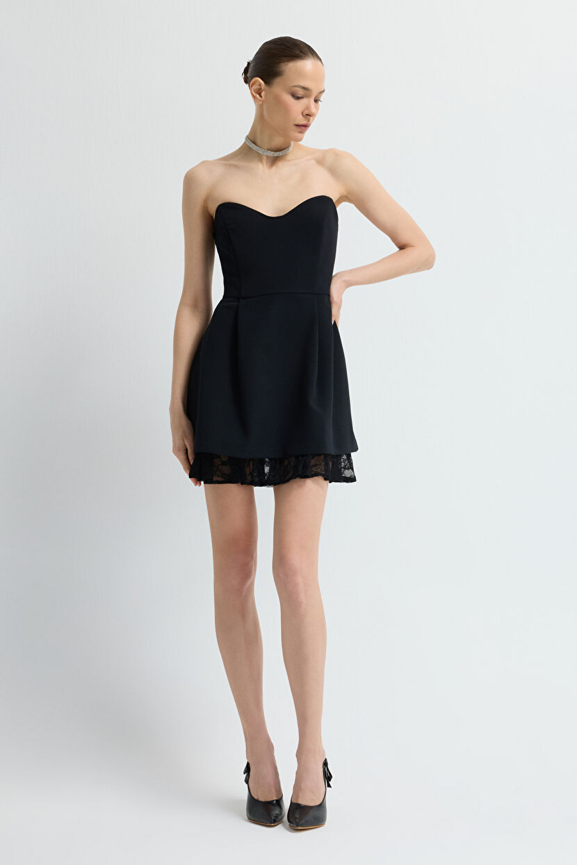 Black Mini Dress with Lace Hem