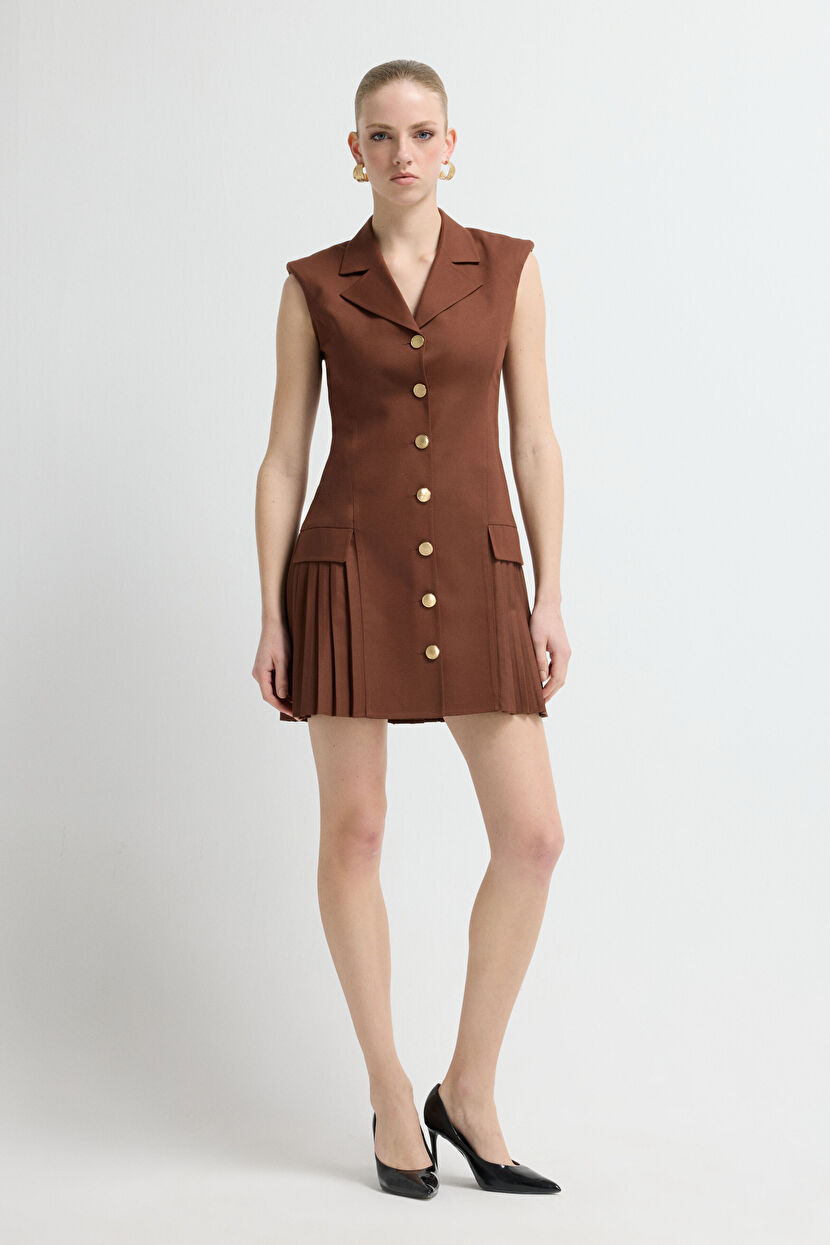 Brown Pleated Mini Dress