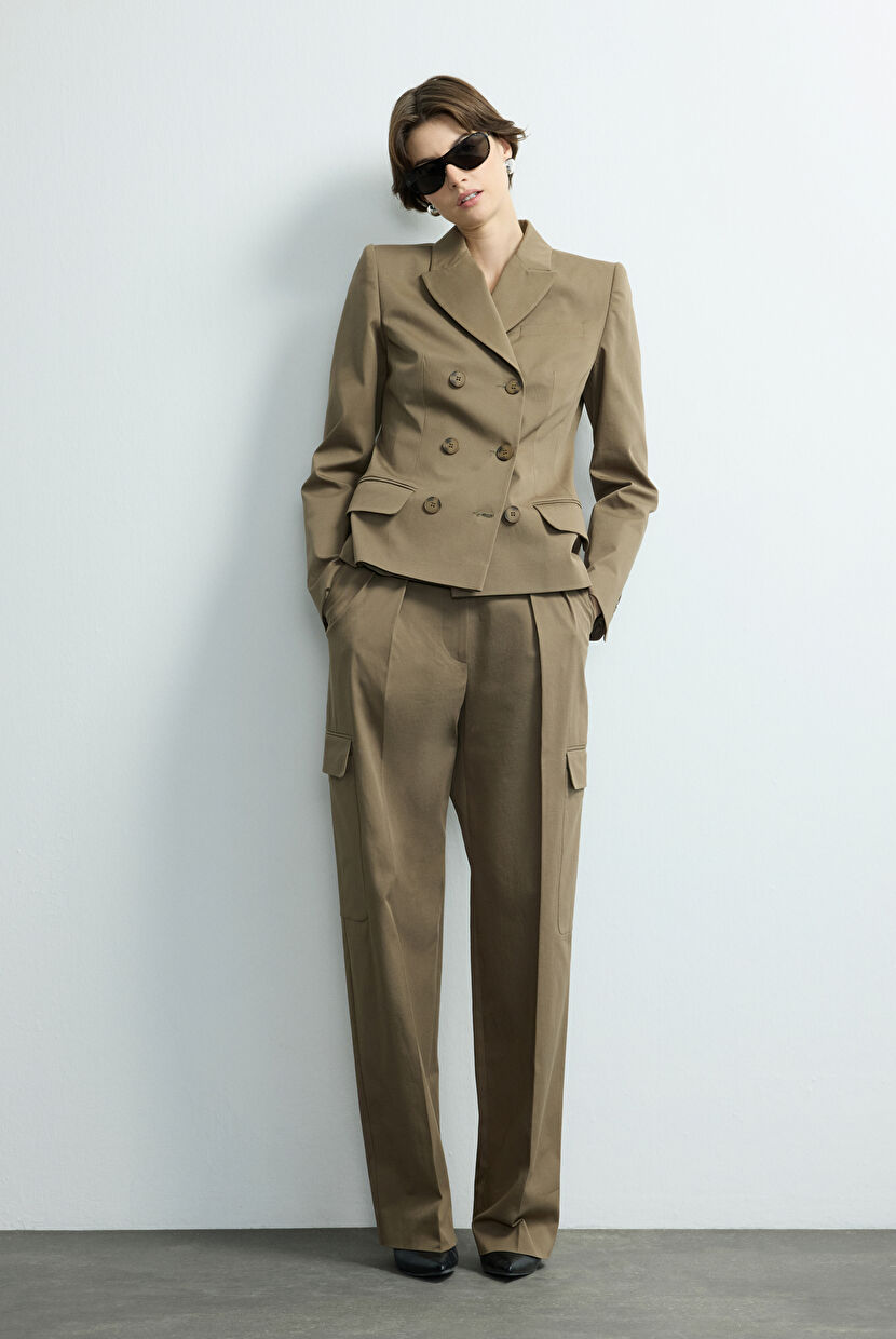 Khaki Pleated Cargo Trousers with Pocket Detail