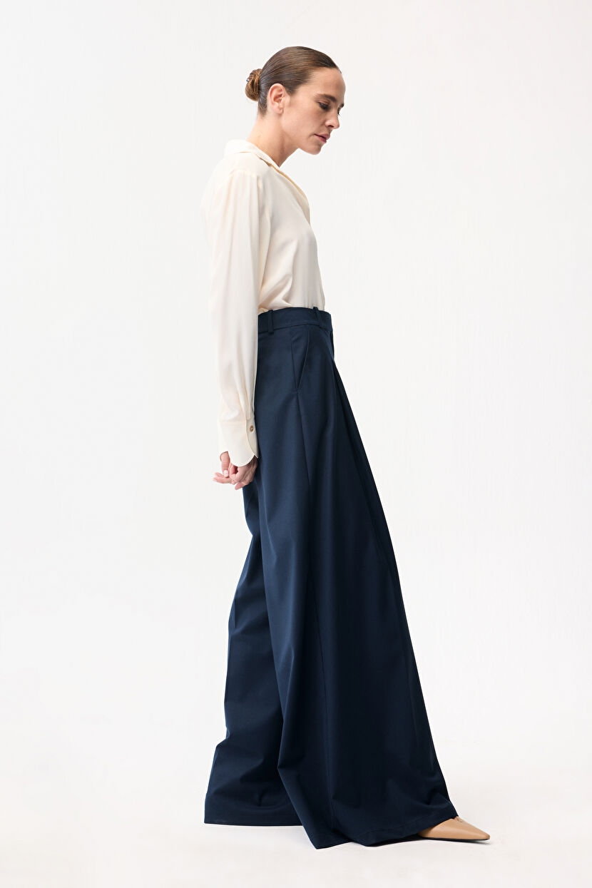 Navy Blue Wide Leg Trousers