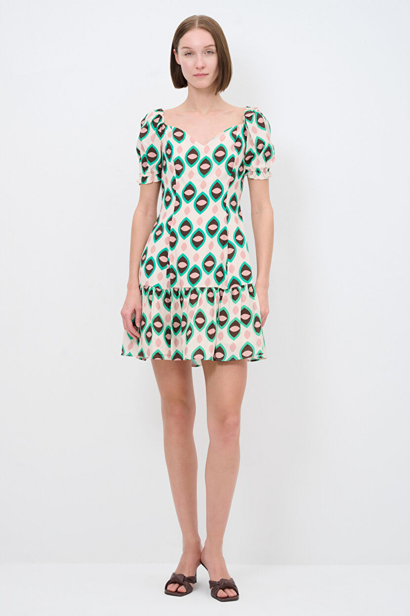 Green Heart Collar Patterned Dress