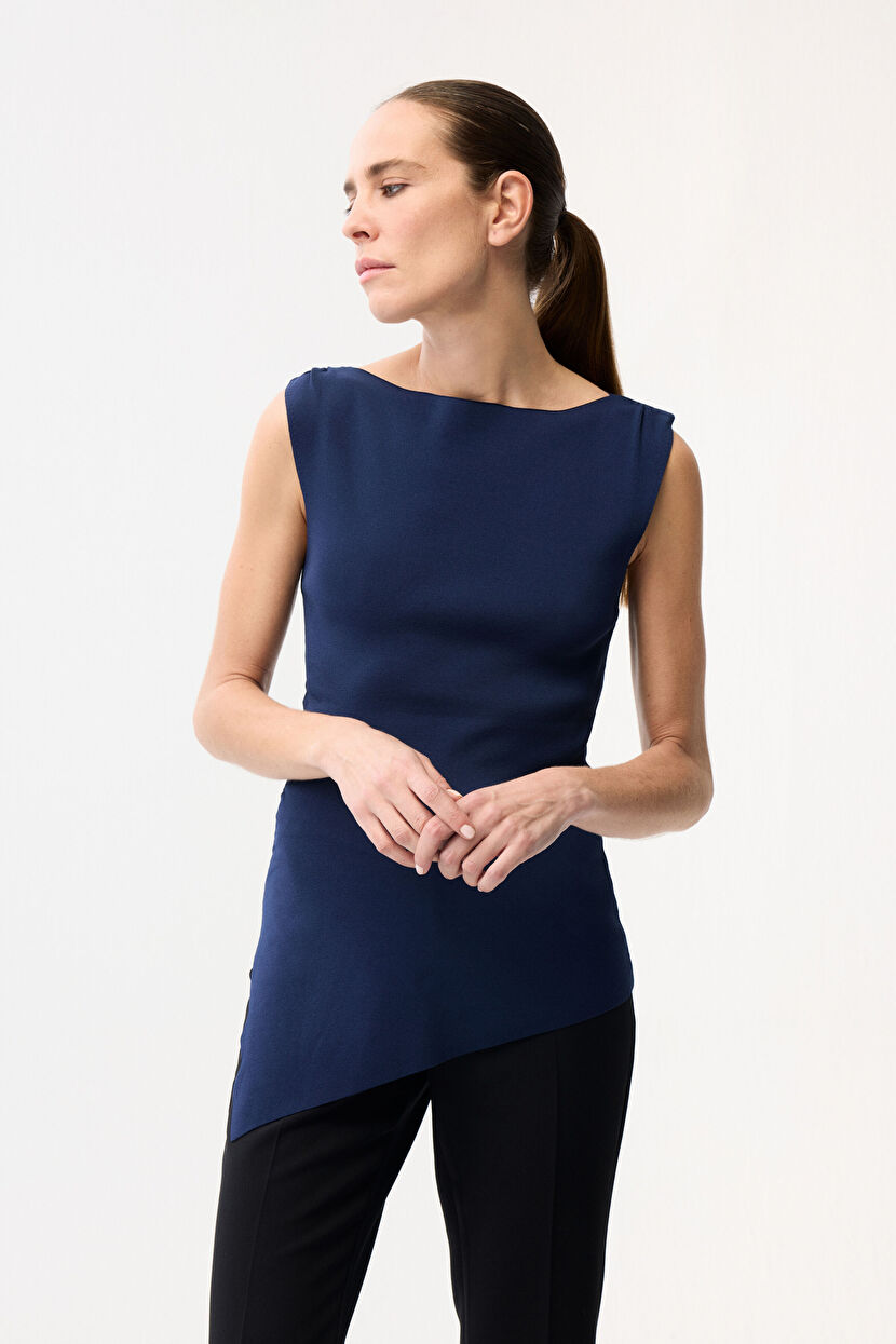 Navy Blue Side-Detail Knitwear Blouse