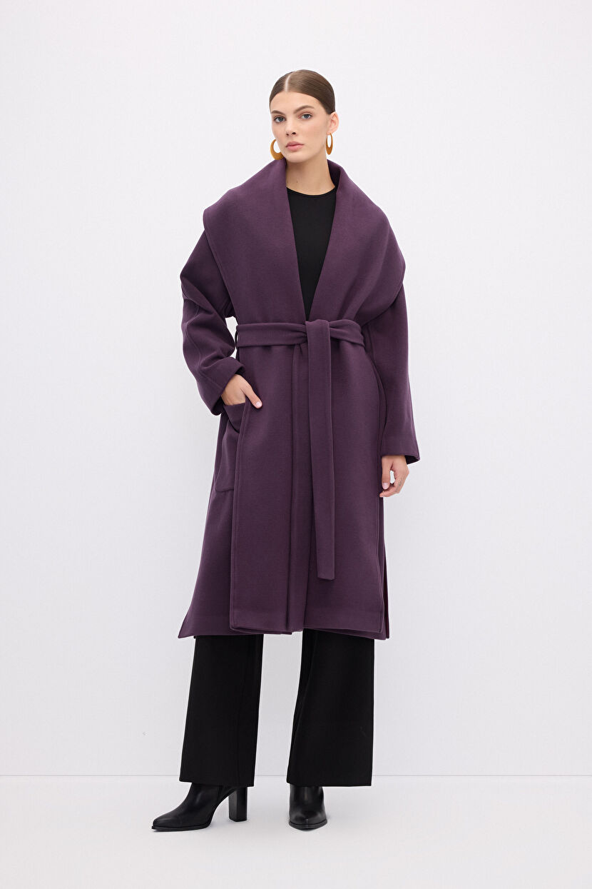 Purple Shawl Collar Coat