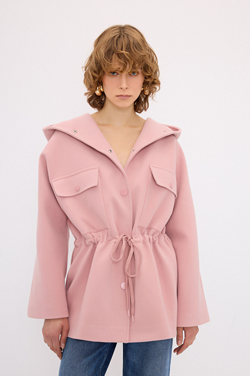 Pink Zipper Detailed Coat