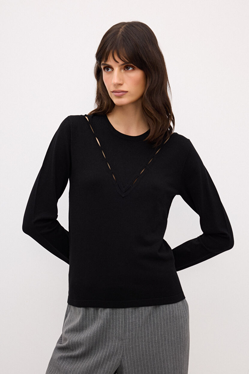 Black Cut-Out Detailed Knitwear Sweater