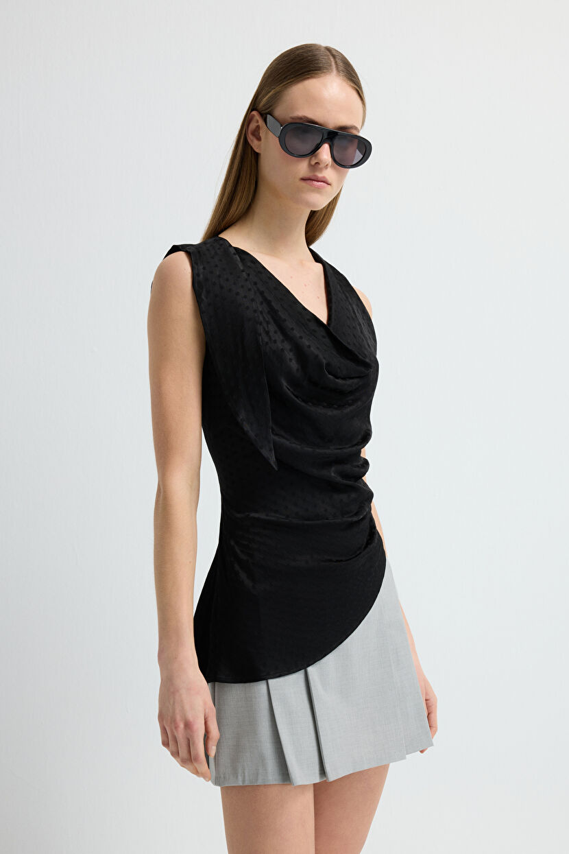 Black Cowl Neck Sleveless Blouse