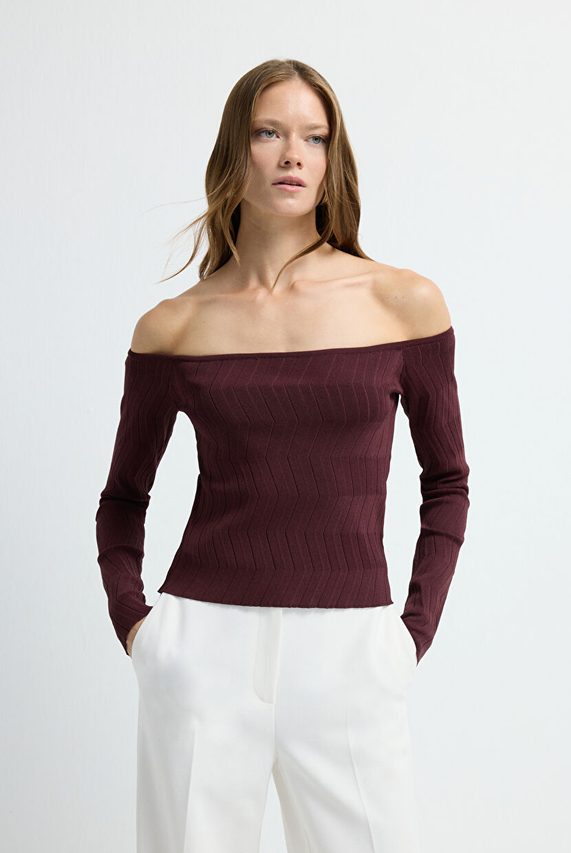 Damson Zigzag Knitted Knitwear Jumper