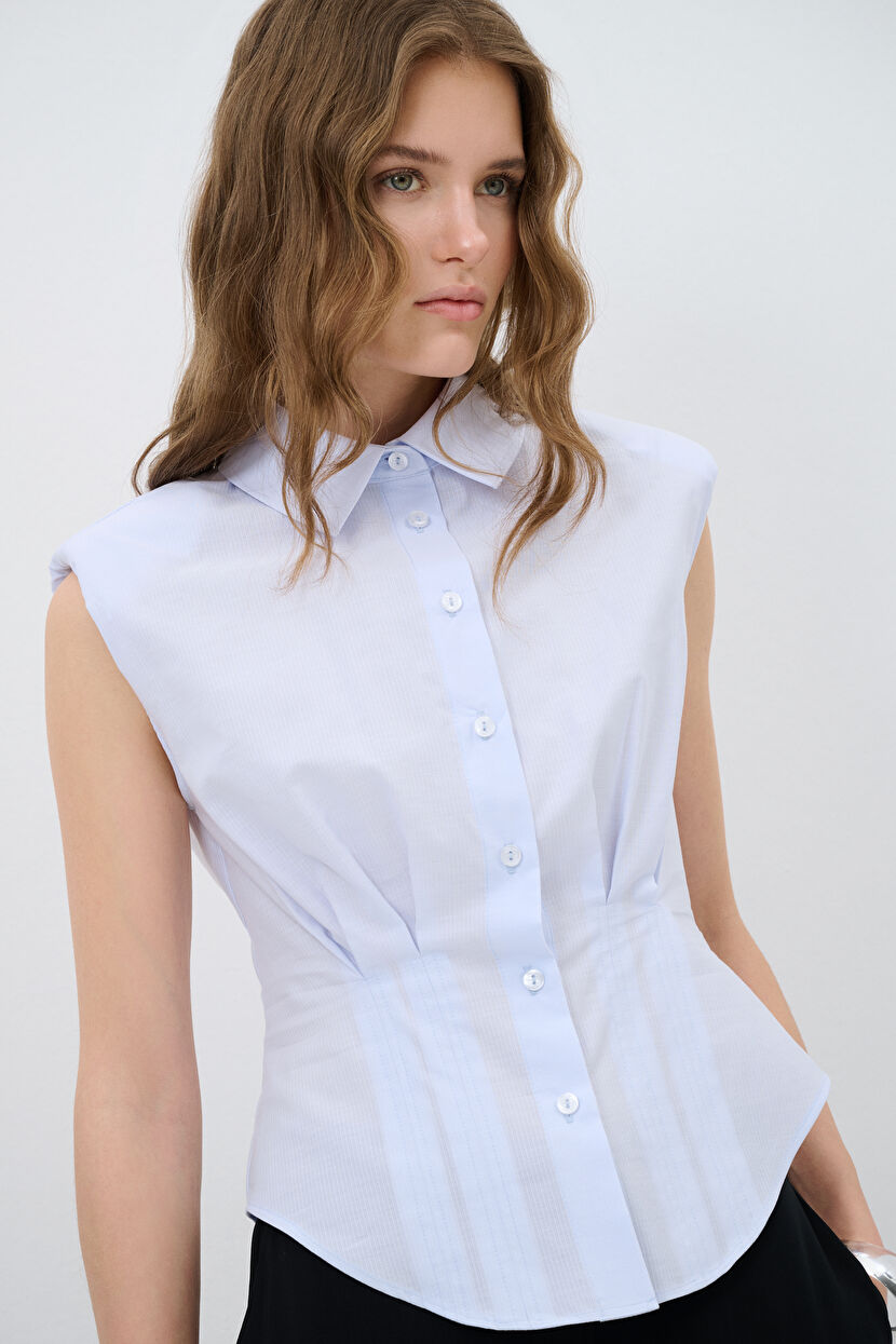 Blue Pleated Detail Sleeveless Shirt