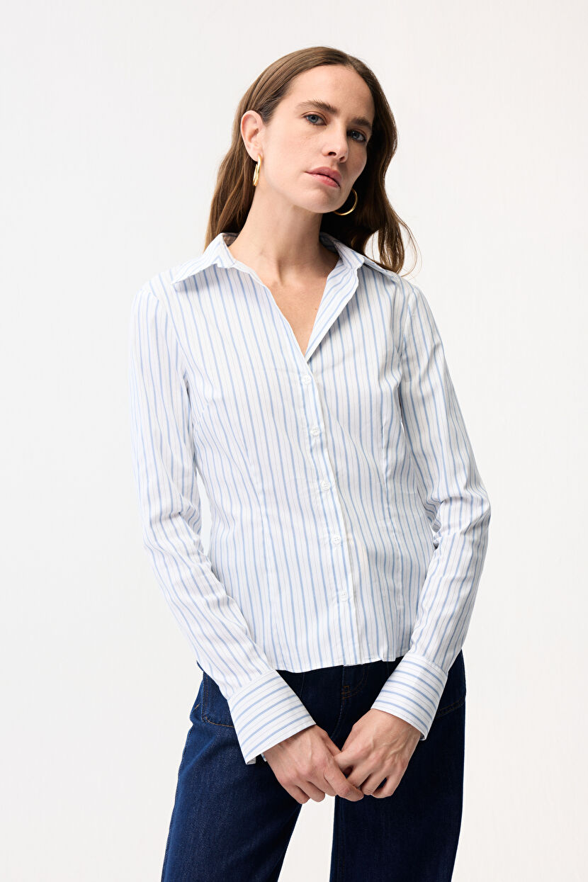 Blue Striped Shirt with Pens