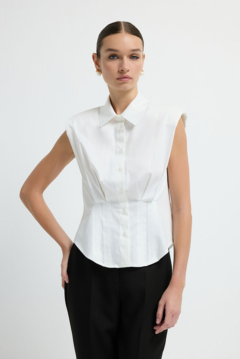 White Pleated Detailed Sleeveless Shirt